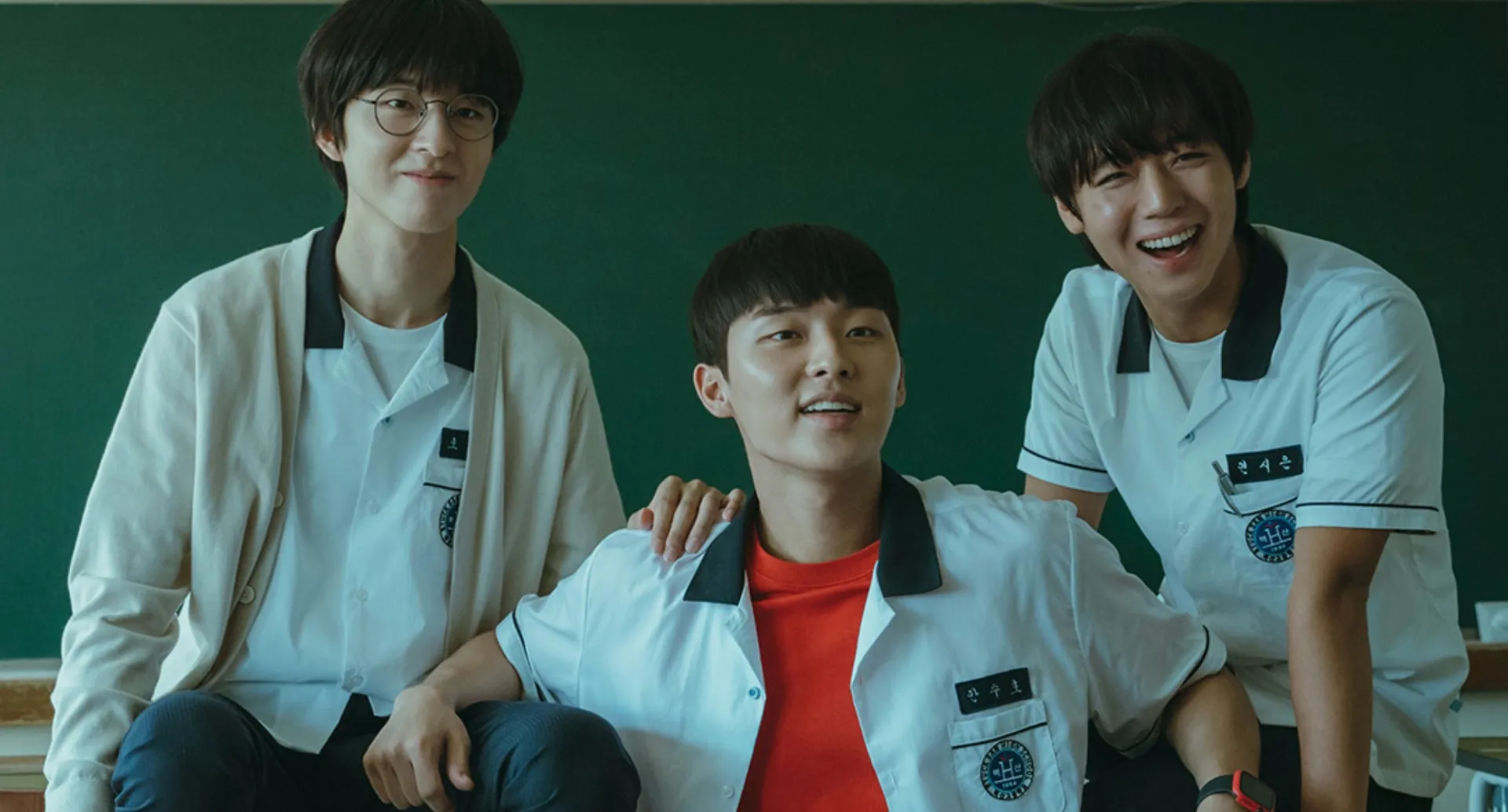 The main trio of Weak Hero Class 1 - Park Ji-hoon, Choi Hyun-wook, and Hong Kyung